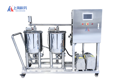 CIP清洗系统 本设备主要用于小型的生产线以及单独容器的清洗,结合酸-碱-水清洗的优点,采取1个、2个或者3个50L-300L的罐,CIP清洗供应泵,清洗液循环回流泵,加热控制系统(电加热),阀门管件以及控制柜集中于一个移动推车上,清洗系统可与设备对接也可采用软管对接, 优点是既有CIP清洗机的全部功效,又方便移动,在单个清洗设备上起到了很好的作用。